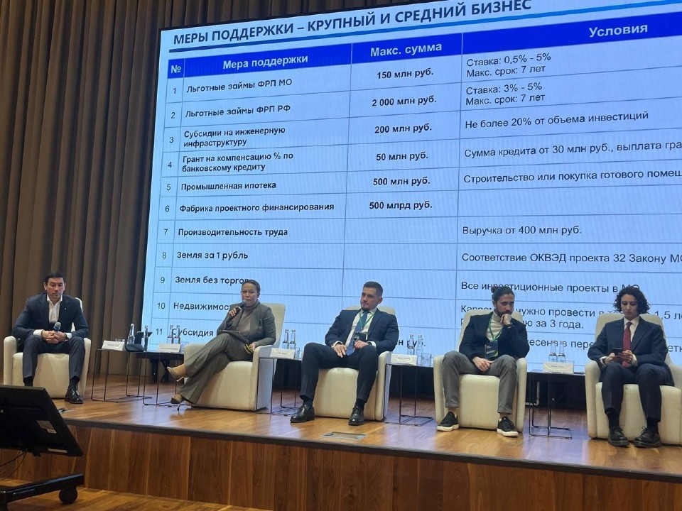 На конференции выступила заместитель председателя правительства — министр инвестиций, промышленности и науки Московской области Екатерина Зиновьева, которая рассказала, что в Подмосковье работает широкий перечень федеральных и региональных мер поддержки бизнеса.
