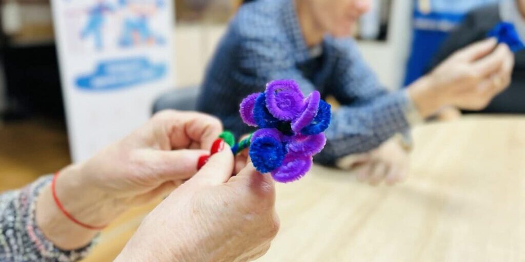 Цветы из синельной проволоки изготовили своими руками каширские долголеты на занятии по творчеству