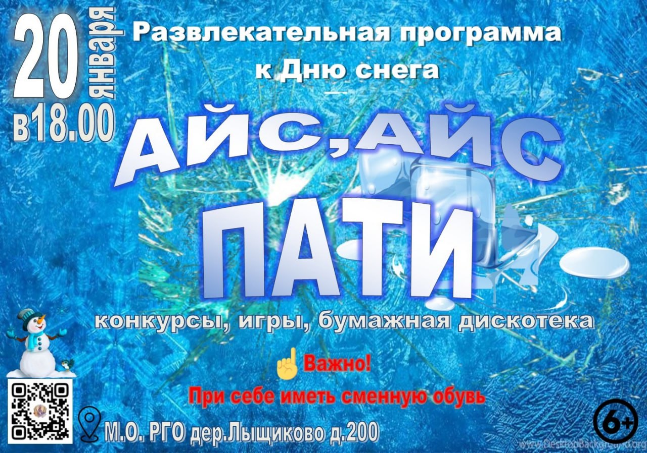 20 января в Лыщиковском доме культуры Рузского городского округа состоится развлекательная программа "Айс, айс пати", посвященная Дню снега.
