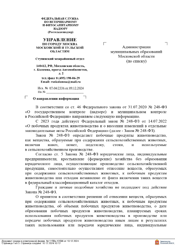 С 2023 года в России вступил в силу Федеральный закон № 248-ФЗ от 14.07.2022, который регулирует вопросы, связанные с побочными продуктами животноводства.