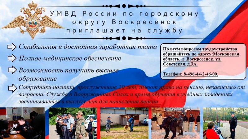 УМВД России по городскому округу Воскресенск приглашает на службу