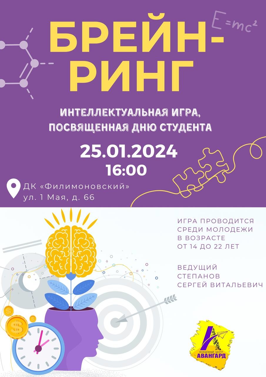 25 января в 16:00 в Доме культуры «Филимоновский» состоится интеллектуальная игра «Брейн-ринг, посвященный Дню студента» Встретимся на Ринге?