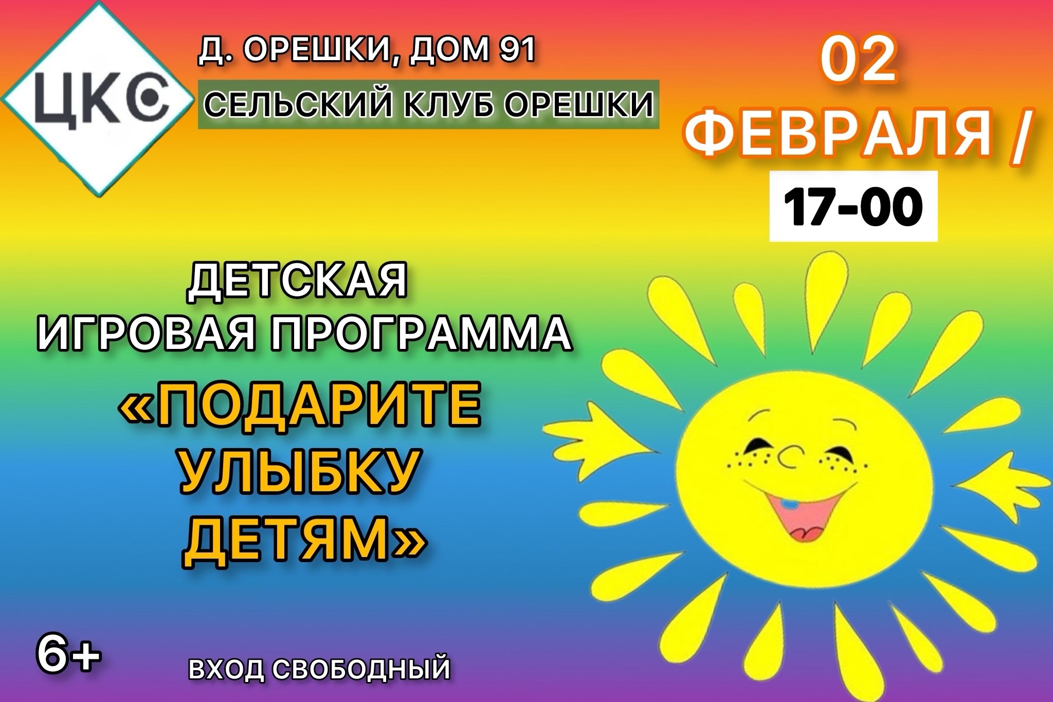2 февраля в Орешкинском сельском клубе Рузского городского округа состоится программа "Подарите улыбку детям".