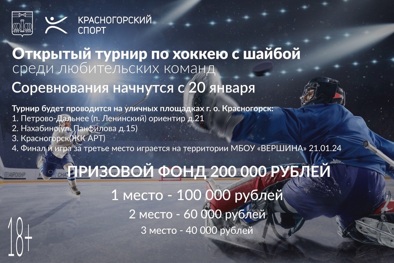 20-го января стартует Открытый турнир по хоккею с шайбой среди любительских команд!
